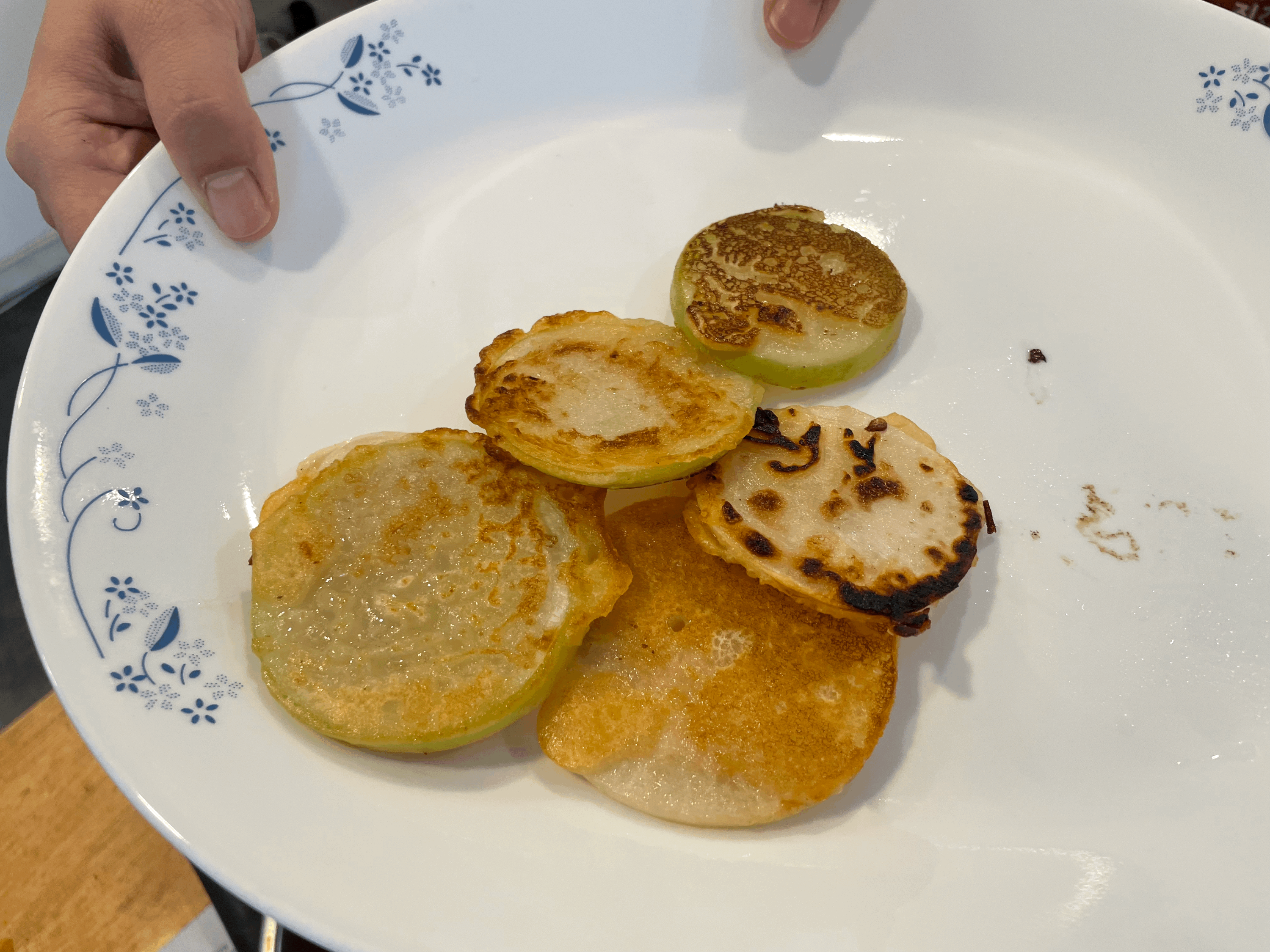 하나 둘 배추전이 나오기 시작했습니다. 제가 여태껏 먹은 하얗고 노란 알배추로 한 배추전과 맛이 사뭇 달랐습니다. 부침물에는 간장과 다진마늘을 넣는게 킥! 그리고 부침가루에 쌀 부침가루를 섞어주는게 킥!이라고 씨앗이 공유해주었습니다. 아이들이 단단한 조직감을 가지고 있어서 그런지 배추전이 쫀득하다는 느낌을 받았습니다. 여지껏 부침물 맛에 먹는 배추전인줄 알았는데, 구억배추로 만든 배추전을 씹을 때마다 배추의 독특한 향이 톡톡 올라왔습니다!