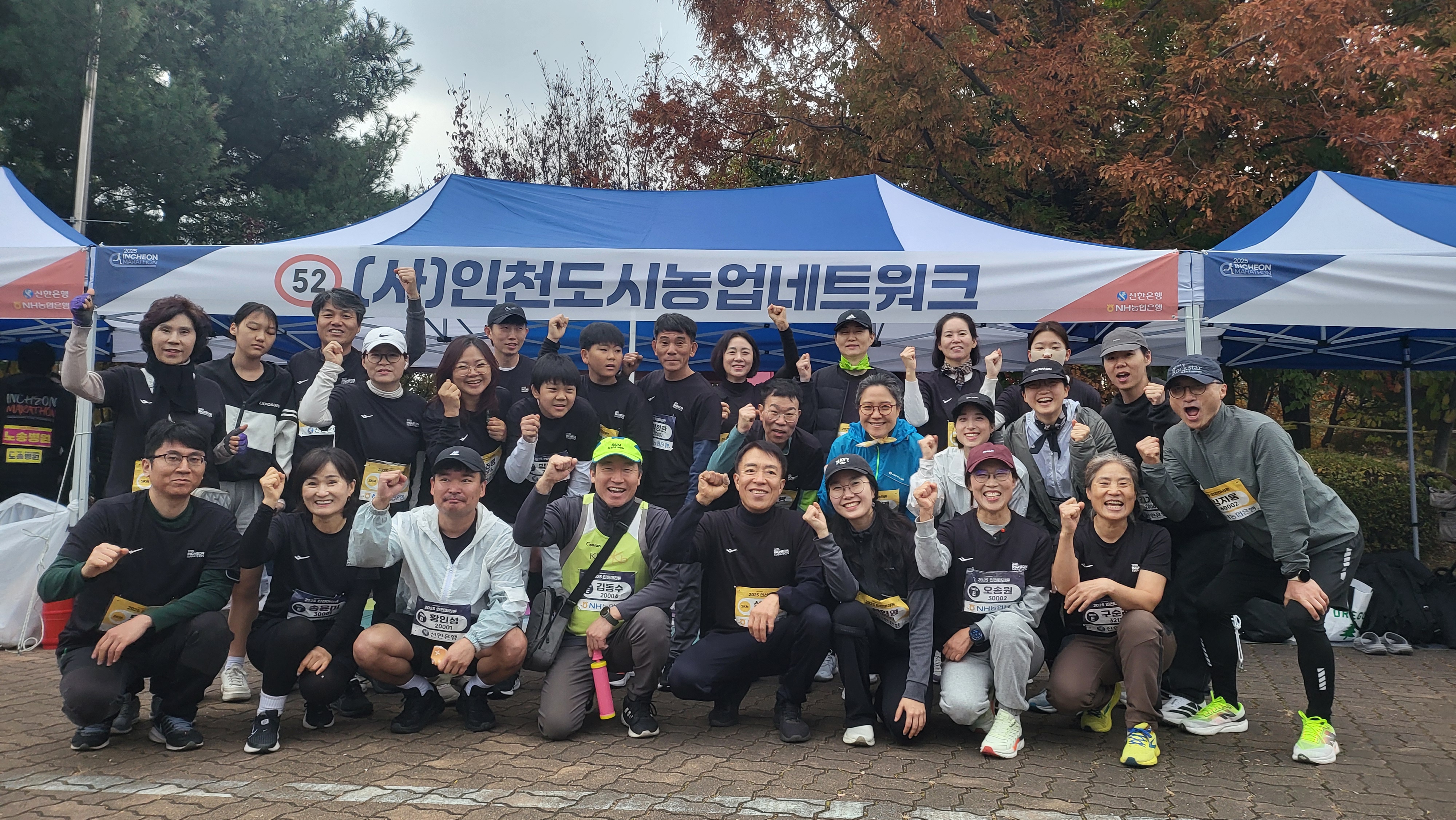 역을 나오니 화장실에 벌써 어마무시한 줄이 있었습니다. 그때부터 10키로를 잘 달릴 수 있을지에 대한 걱정보다, 처음으로 마라톤대회의 풍경들을 보며 신기함과 전율을 느낄 수 있었습니다. 우선 오목눈이와 친구들은 인천도시농업네트워크 팀 부스를 찾았습니다. 여러 부스들을 지나치며, 함께 준비운동을 하는 분들, 서로에게 힘찬 응원과 격려를 해주는 분들, 단체사진을 찍는 분들, 그리고 오랜만에 만난 사람들과 반갑게 인사하는 분들이 보였습니다. 활기찬 분위기 속 오목눈이 기자는 그 에너지를 듬뿍 받았는데요, 왜인지 모르게 갑자기 덩달아 에너지가 차오르는 것 같았습니다.