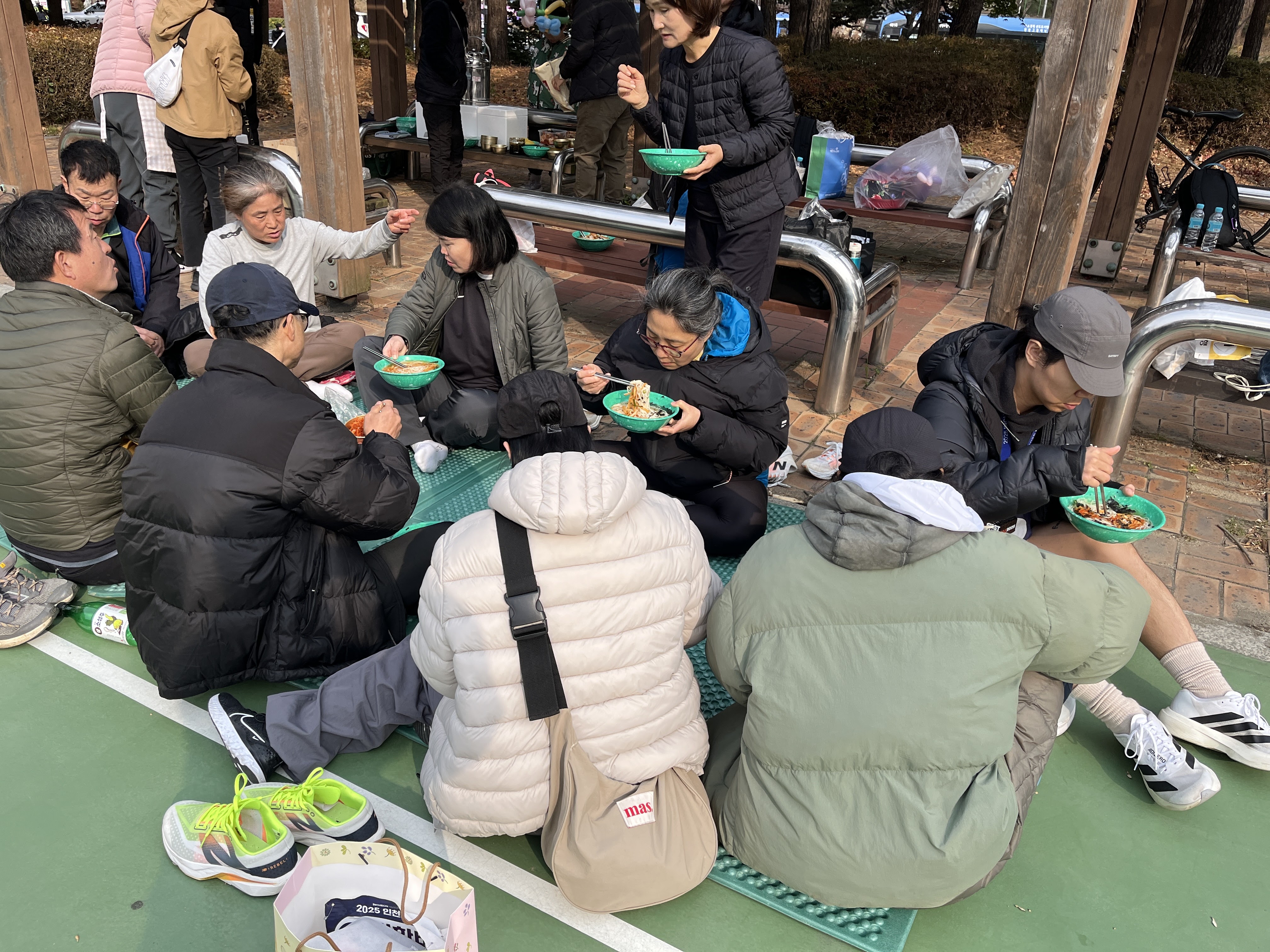 처음 받아보는 메달은 참 영롱했습니다. 달리고나니 바로 몸이 추워지고, 허기가 그렇게 졌습니다. 지친몸으로 부스에 도착하니 바람과 먼저 결승선에 도착하신 도시농부러너분들이 계셨습니다. 다함께 부스를 정리하고 조금 떨어진 공터로 이동하였습니다.