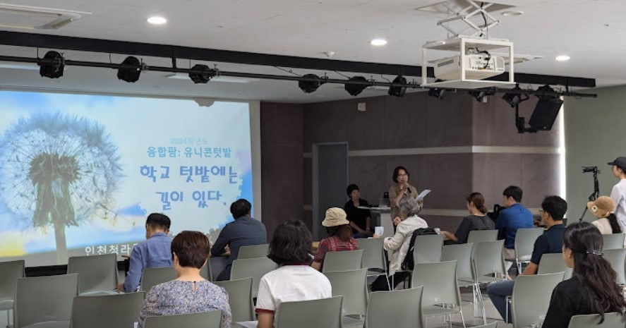 마지막 순서인 <학교텃밭의 필요성 및 지속방향 제안>에는 인천시 교육청 AI융합과 남선정 장학사, 인천도시농업네트워크 김충기 대표, 이선경 교육활동가가 학교텃밭에 관한 전반적인 의견과 제안을 이야기했습니다.