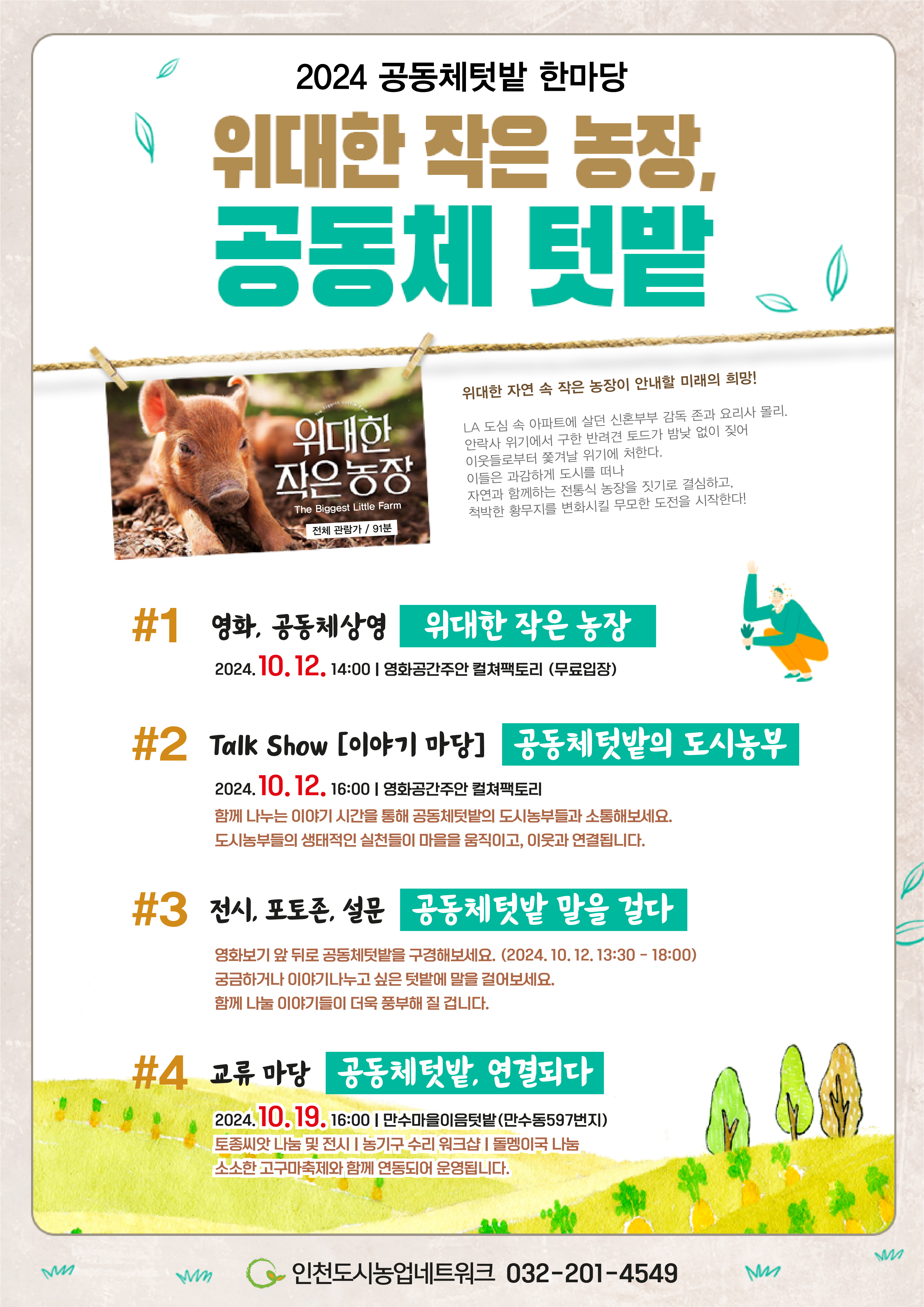 - 영화 <위대한 작은 농장> 상영: 흙 냄새 가득한 영화를 보며 영감을 얻고, 자연과 함께하는 삶에 대한 로망을 키워보세요.