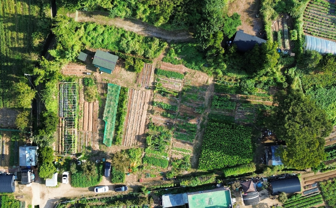 개명산 아래에 위치한 벽제농장. 왼쪽이 노숙인을 위한 치유텃밭이다.