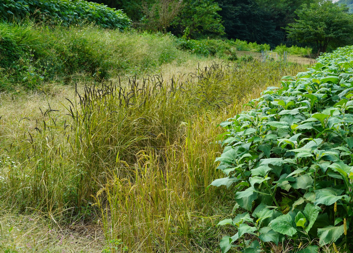 밭 한켠에 벼가 익어가고 있다. 60년대 초 자급자족하던 동강원 공동체의 주식이었던 밭벼가 이제는 심을 필요가 없게 됐다. 그 종자 만큼은 이어가자는 생각으로 처음 텃밭 활동을 하는 시작하는 분들에게는 반드시 밭벼를 심도록 권하고 있다. 농부에게 벼의 의미는 각별한 것 같다. 생명을 이어가는 마음, 쌀이 가진 의미가 이곳에서 활동하는 고도넷 회원들에게도 전해질 것이다.