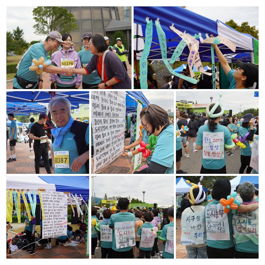 도시농부들은 저마다 풍선도 달고, 등에 메세지도 달고 이목을 집중시키기도 하며 힘차게 달렸다. 곳곳에서 촬영팀이 반겨주어서 마지막 뛰는 것도 지치지 않고 모두가 완주했다. 완주메달을 받고 기뻐하는 모습들에서 작은 성취감이 느껴지고 완주했다는 기쁨도 함께 느껴졌다.