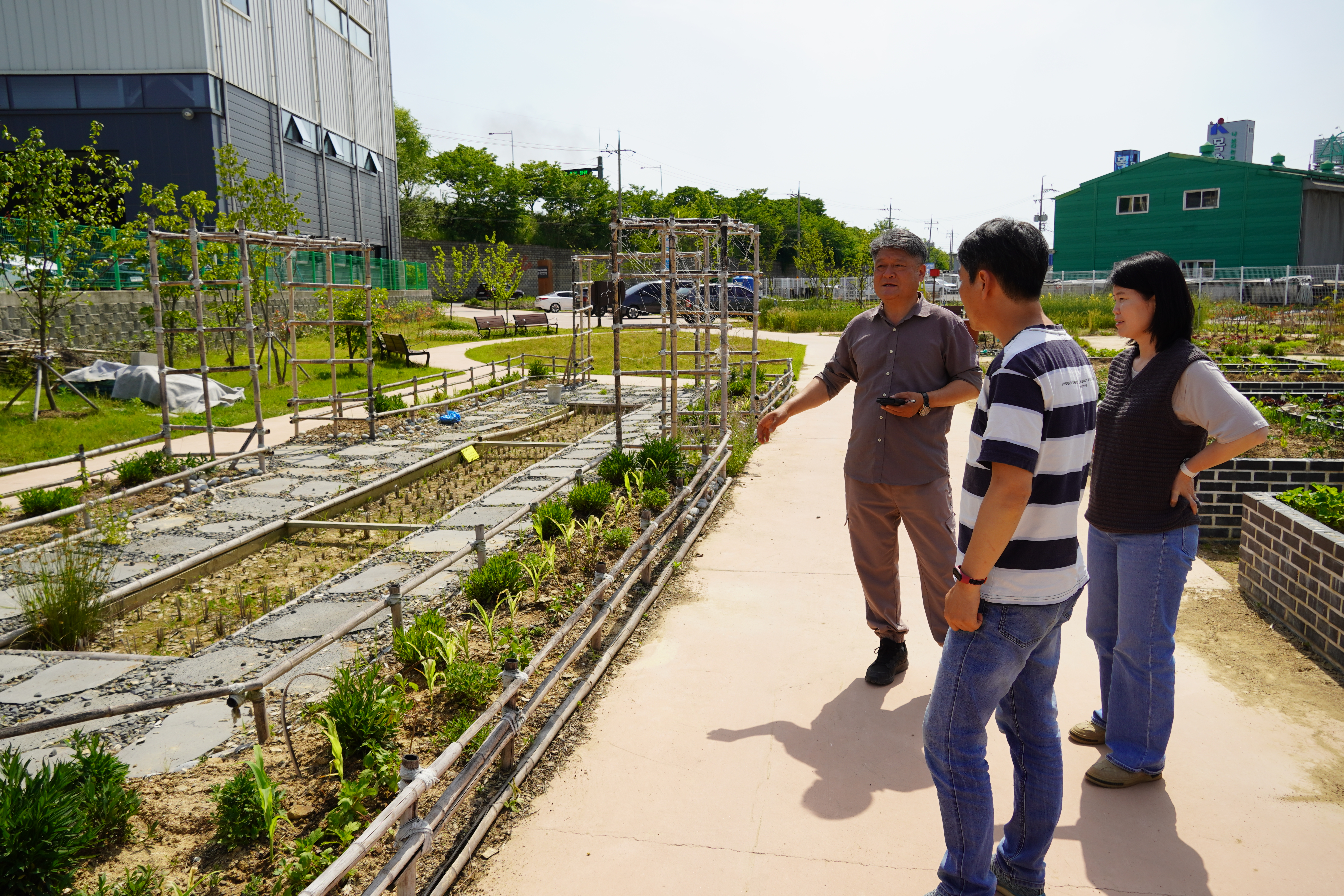민관이 협력하여 운영하는 도시텃밭의 모델로 유용한 방식이라고도 생각되지만 안정적인 예산과 조금더 유연한 공간의 활용, 그리고 공동체들의 활동이 텃밭에서 더 많이 일어나기 위한 방식의 지원이 뭐가 있을지 고민하게 된다. 드론으로 멋진 경관사진을 찍으려고 했지만, 인근에 군공항이 있어 드론이 뜨지 못했다. 탐방하는 동안에도 어찌나 많은 제트기들이 떠있는지 대화를 이어가기 어려울 정도였다.