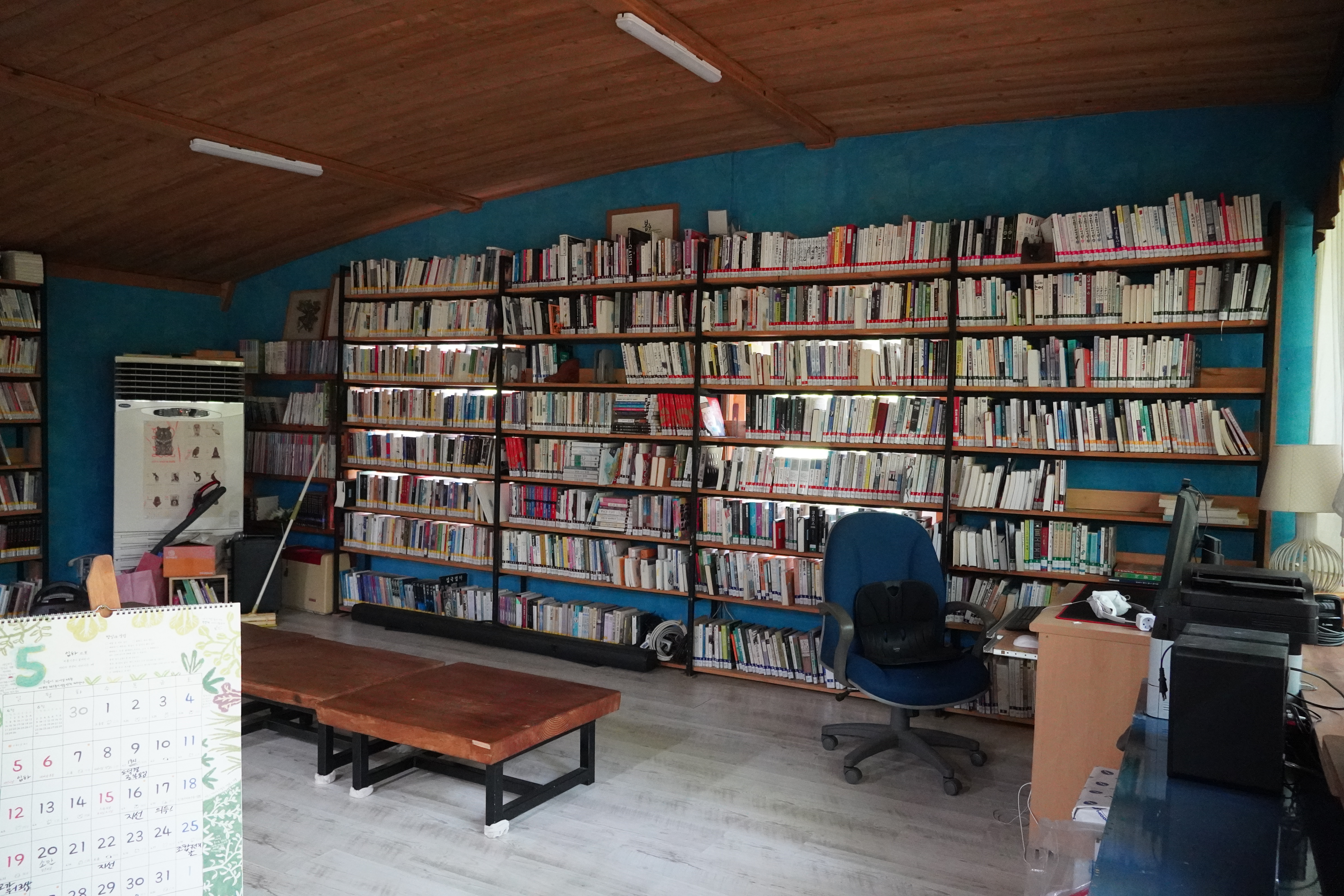 간담회가 끝나고 이튿날 마을 이곳저곳, 항꾸네협동조합의 공간들과 조합원들의 공간을 둘러보았다. 농부가 자기공간을 조금 얻어 농사를 시작하기도 했고, 다정의 집과 뜰을 보기도했고, 자급력이 강한 조합원의 밭을 둘러보기도 했다. 그리고 찾은 곳은 조금 떨어진 공간인데 항꾸네협동조합의 첫 공유공간인 '농담' 지금은 '겸면작은도서관 책담'이라는 간판이 달려있다. 조합원들의 모임공간, 공부공간, 공유주방 기능을 하면서 마을에서는 도서관의 기능을 하고 있다. 이 앞에 멋지게 만들어진 데크는 조합원들이 시간과 노력을 서로 내어 만들어진 공간으로 시농제도 하고 모임도하는 곳이다.