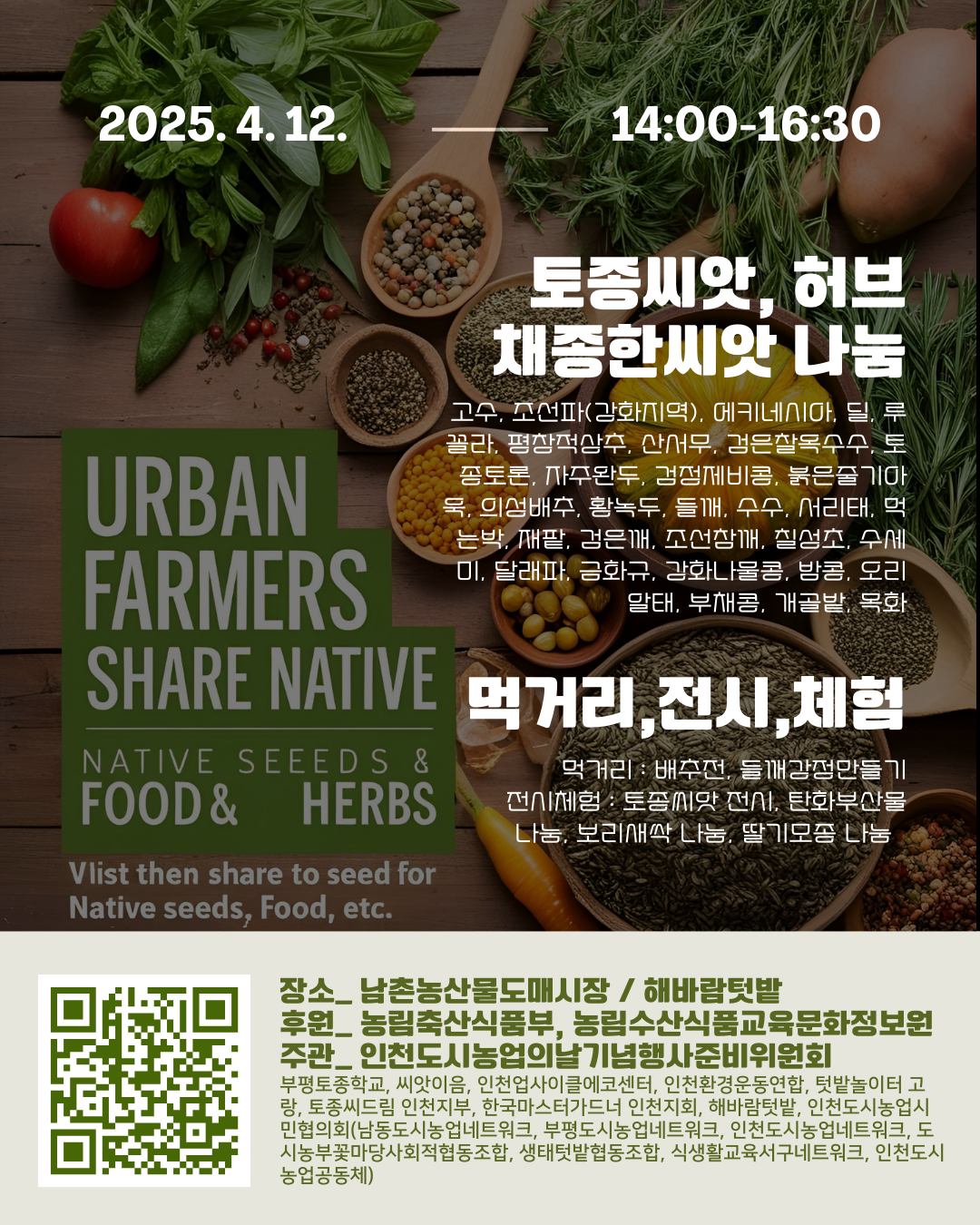 - 행사명 : [도시농업의날 기념행사] 인천 도시농부, 토종씨앗으로 만나다.