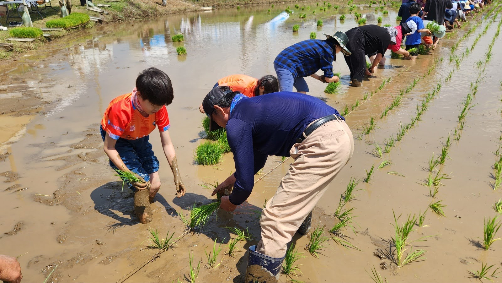 그 뿐인가? 도시에서 일상에 지친 마음을 치유받는 효과가 있다. 빽빽하게 들어선 고층빌딩 사이로 작은 틈으로만 보던 하늘이 이렇게 시원하게 보이고, 주변은 온통 녹색이다. 모두가 신발벗고 옷을 걷어올려 논으로 들어가면 오랫만에 또는 난생처음으로 논의 감촉을 느끼고 온몸으로 자연속에 들어온 느낌이다. 그 옛날 힘든 노동이었을 모내기가 신나는 놀이가 되는 순간 서툴어서 뒤쳐져도, 엉덩방아를 찧어도 모두가 즐겁다.