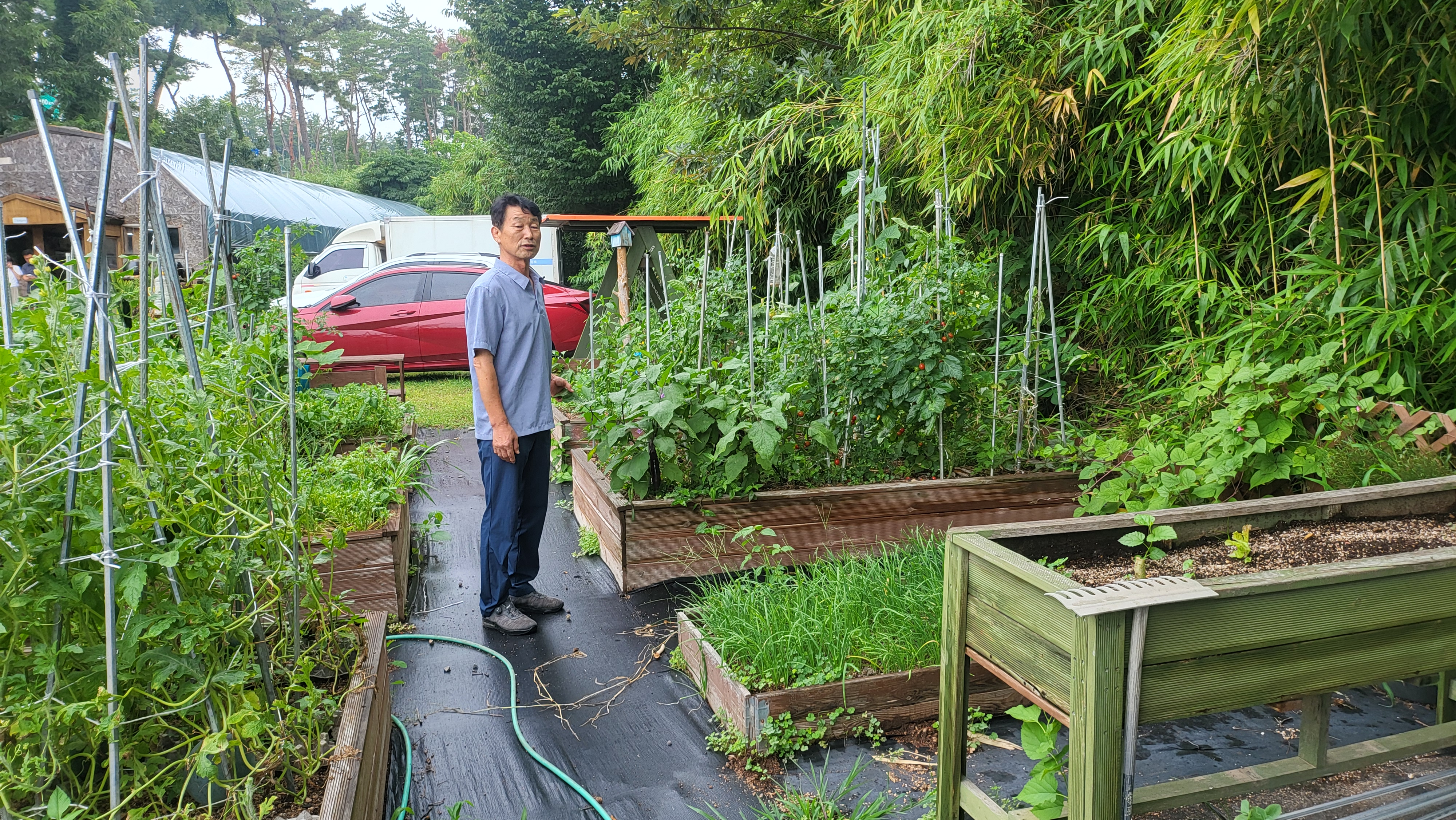 협회가 위치한 공간은 보는 이의 부러움을 자아내는 풍요로운 곳이었다. 교육장으로 쓰이는 커다란 하우스, 넓은 실습 밭과 야외 교육장, 농자재 보관용 하우스, 연못과 정자, 중증장애인을 위한 프로그램이 운영되는 틀밭, 넉넉한 주차 공간까지…. 실습 밭 한가운데에는 작은 정원과 호박 덩굴로 둘러싸인 터널이 있었고, 그 옆에는 토끼들이 자라며, 또 한쪽에는 학생들이 만든 트리하우스도 자리 잡고 있었다. 마치 필요한 모든 요소가 갖춰진 완벽한 도시농업 공간처럼 느껴졌다.