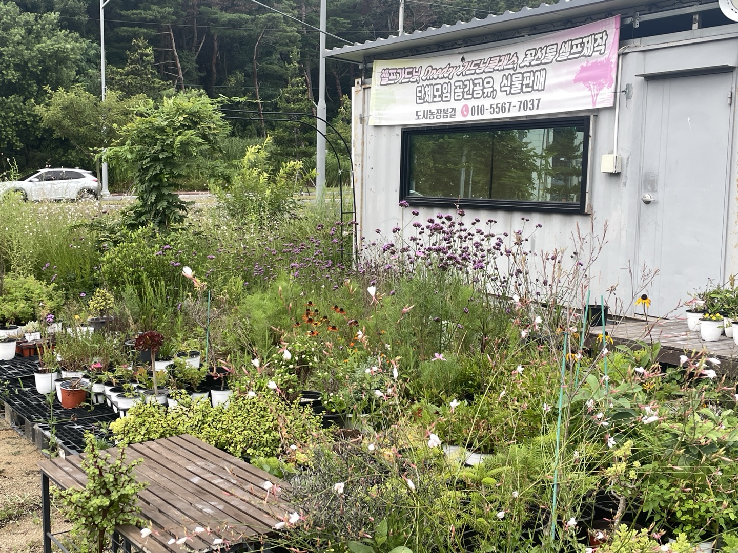 도시농장 봄길은 교육장 하우스 1동, 온실 하우스 2동, 그리고 야외 정원과 마당까지 식물로 가득한 공간이었다. 길 건너에는 대단지 아파트가 있어 도시 접근성도 훌륭했다. 교육장에 들어서자마자 허브와 꽃 향기가 가득해 마음이 차분해지는 기분이었다. 뿐만 아니라 웰컴티로 허브 코디얼 내어주셔서 눈과 코에 이어 입도 즐거웠다.