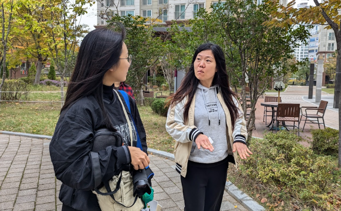 아파트 관리소장님(왼쪽)과 탐방 중에 만난 주민(오른쪽) 텃밭이 없었으면 이웃간 대화도 시작되지 않았을 거라고 한다.
