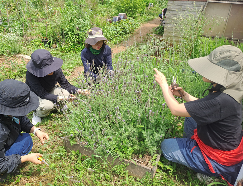 6월 29일에 도림텃밭 정모를 진행했어요. 공동텃밭과 개인텃밭에서 자라고 있는 라벤더,로즈마리, 각종 민트를 솎아 가렌더 만들기를 해 보았어요. 민트는 어르신들의 가래치료에, 로즈마리는 집중력에, 라벤더는 숙면에 도움이 된다고 해요. 일자형 또는 원형으로 꼼꼼히 엮어 멋진 가렌더를 완성했어요.