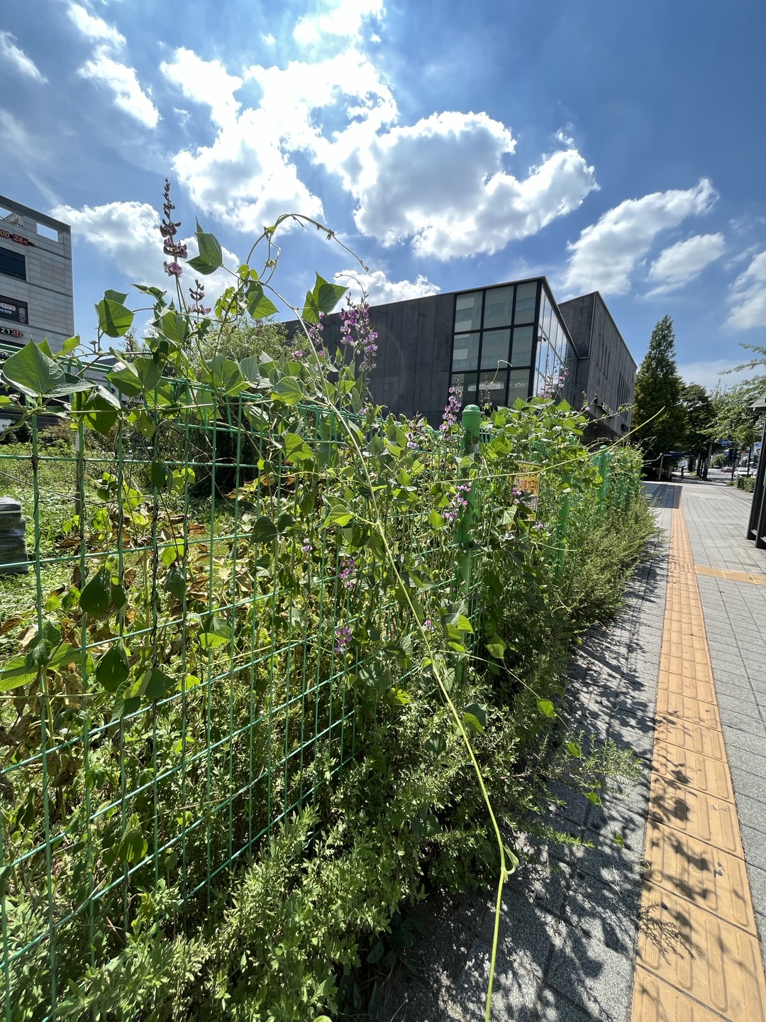현재 상황을 살펴보면, 해바라기는 양분이 부족해서인지 꽃을 못피우고 있다고 한다. 대신 갔다오신 분이 전해준 사진을 보면, 펜스를 따라 까치콩 꽃이 활짝 펴서 파란 하늘과 멋지게 어울리고 있다. 펜스 안은 풀과 쓰레기 뿐이었는데 제초가 되어 지금은 인근 공사장 자재를 임시로 두는 장소로 이용되고 있다고 했다. 게릴라 가드닝을 했던 시민들은 공사가 끝나면 보리나 밀을 뿌리겠다고 말을 전해왔다.