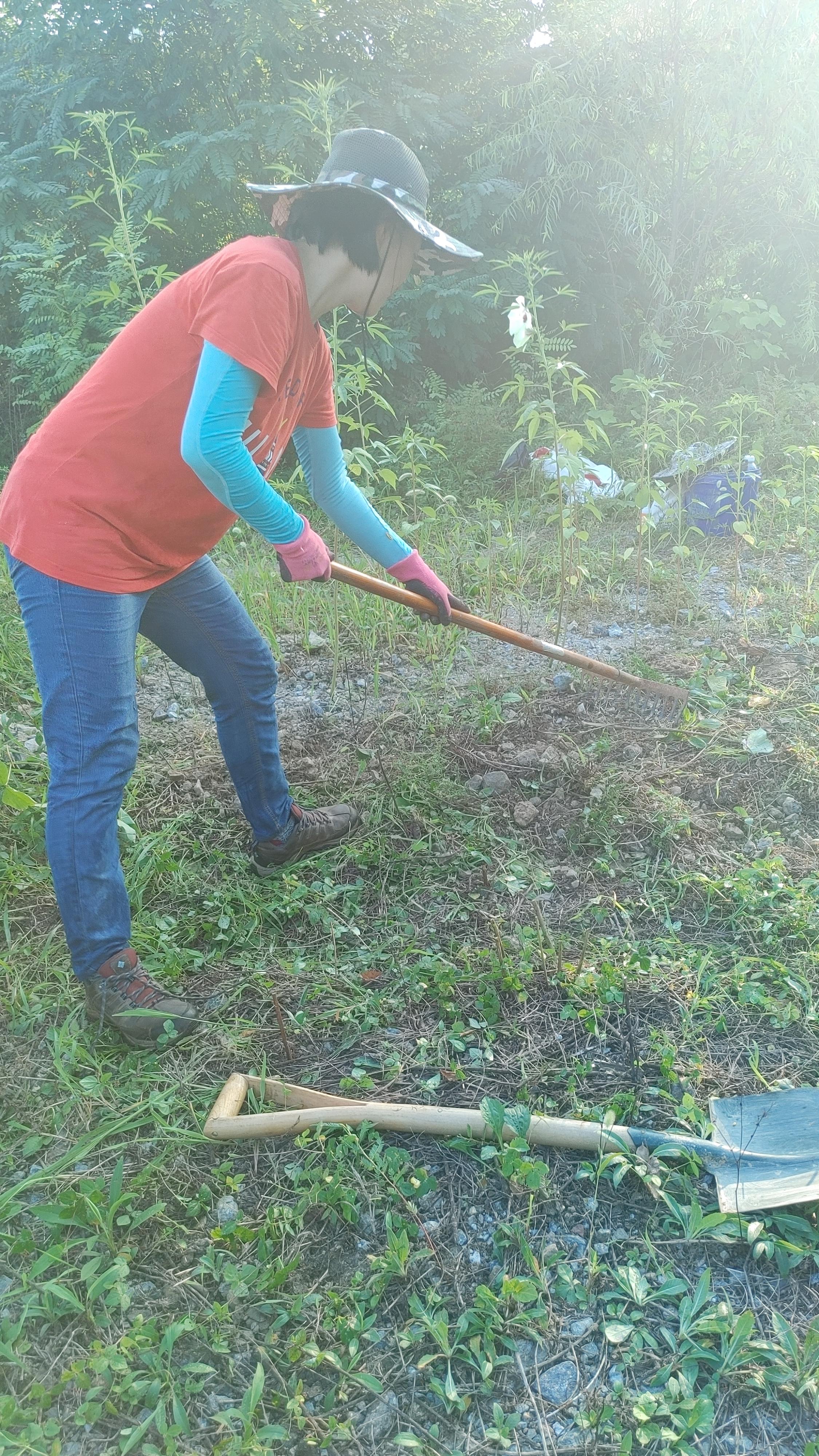 낫으로 허리까지 오는 억센 풀을 베어내고 엉켜 있는 칡덩굴을 가위로 잘라 풀어냈다. 쪼그리고 앉아 잡초를 뽑고 억센 뿌리까지 호미를 이용해 캐냈다. 아침이라도 한낮처럼 햇볕이 강해서 모두 땀을 비 오듯 흘렸고 모기의 공격을 받았다. 더운 날씨라 반바지를 입은 분이 있었는데 다리가 퉁퉁 부을 정도로 모기에 물리기도 했다. 일을 시작하기 전에 몸에 기피제를 뿌렸지만 다들 땀을 많이 흘려서 그런지 소용이 없었다. 내가 워낙 모기에 잘 물리는 사람이라 평소 같으면 십중팔구 나에게 모기가 집중되었을 텐데, 모두가 땀을 흘리니 모두 공평하게 모기밥이 되었다. 고통이 분산된 셈이지만, 나에게 올 모기가 다른 사람에게 간 것 같아서 괜히 미안했다.