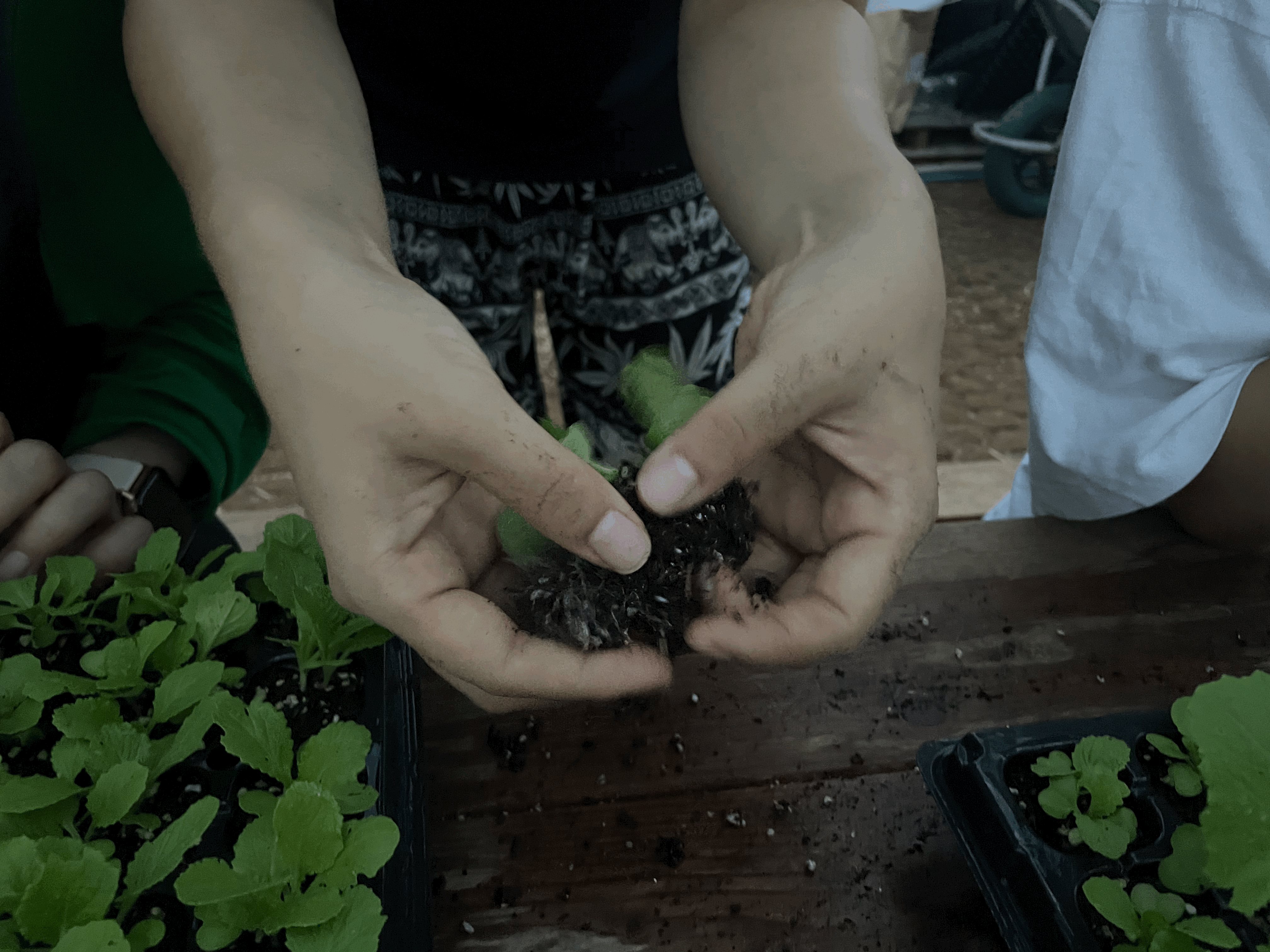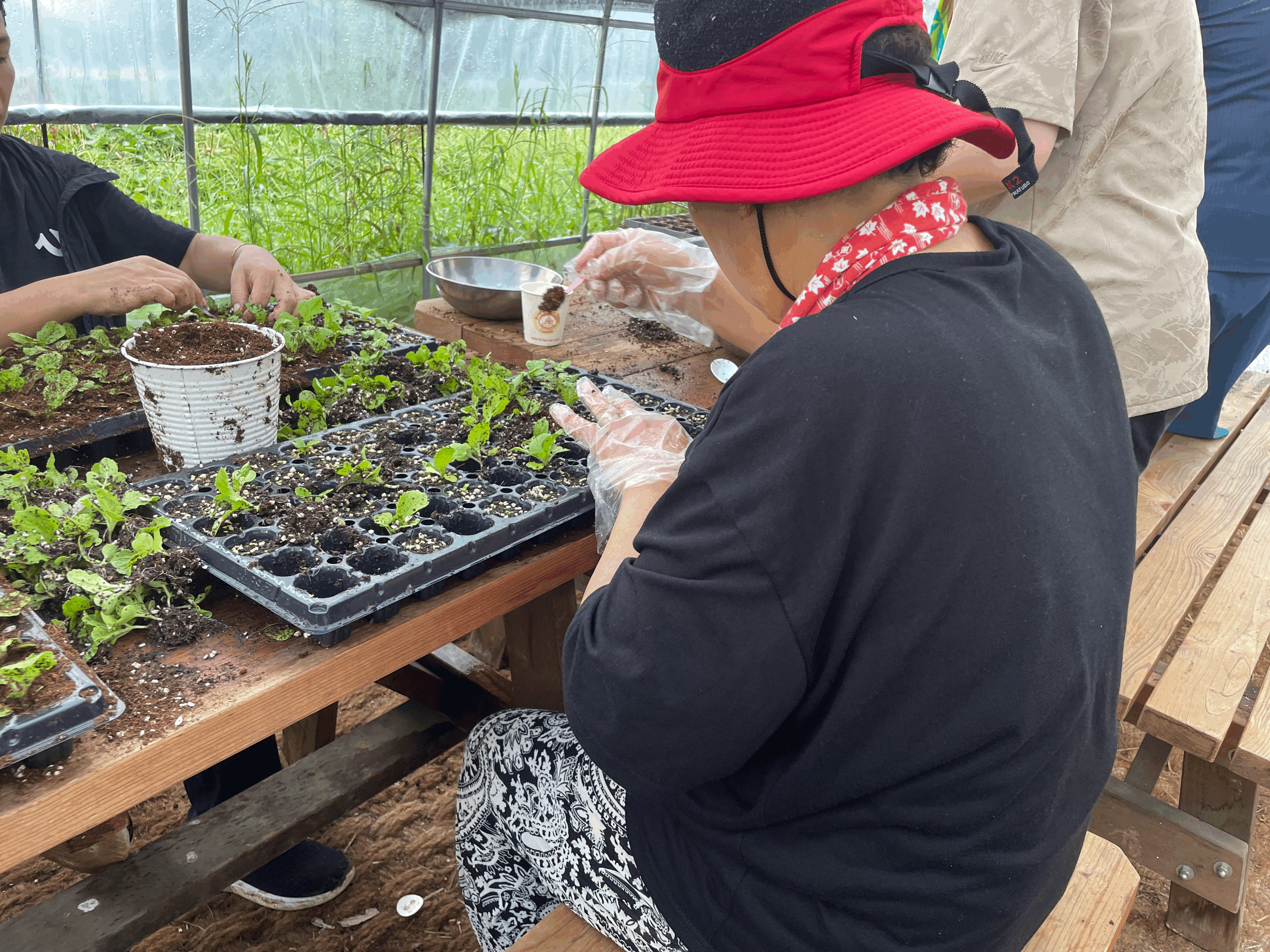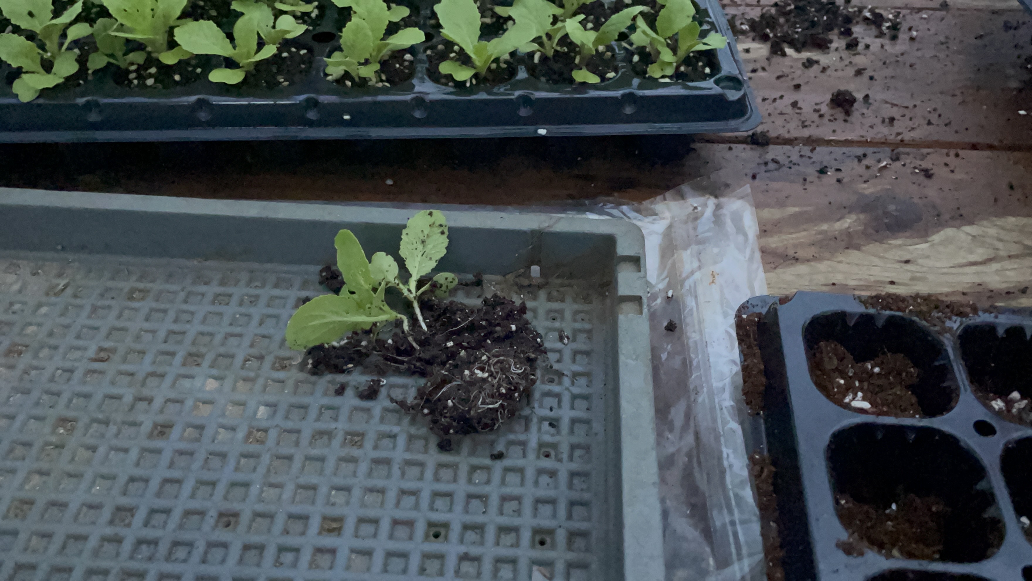 분리된 새싹들은 영양분이 있는 새로운 상토와 함께 모판에 새롭게 심겨졌습니다.