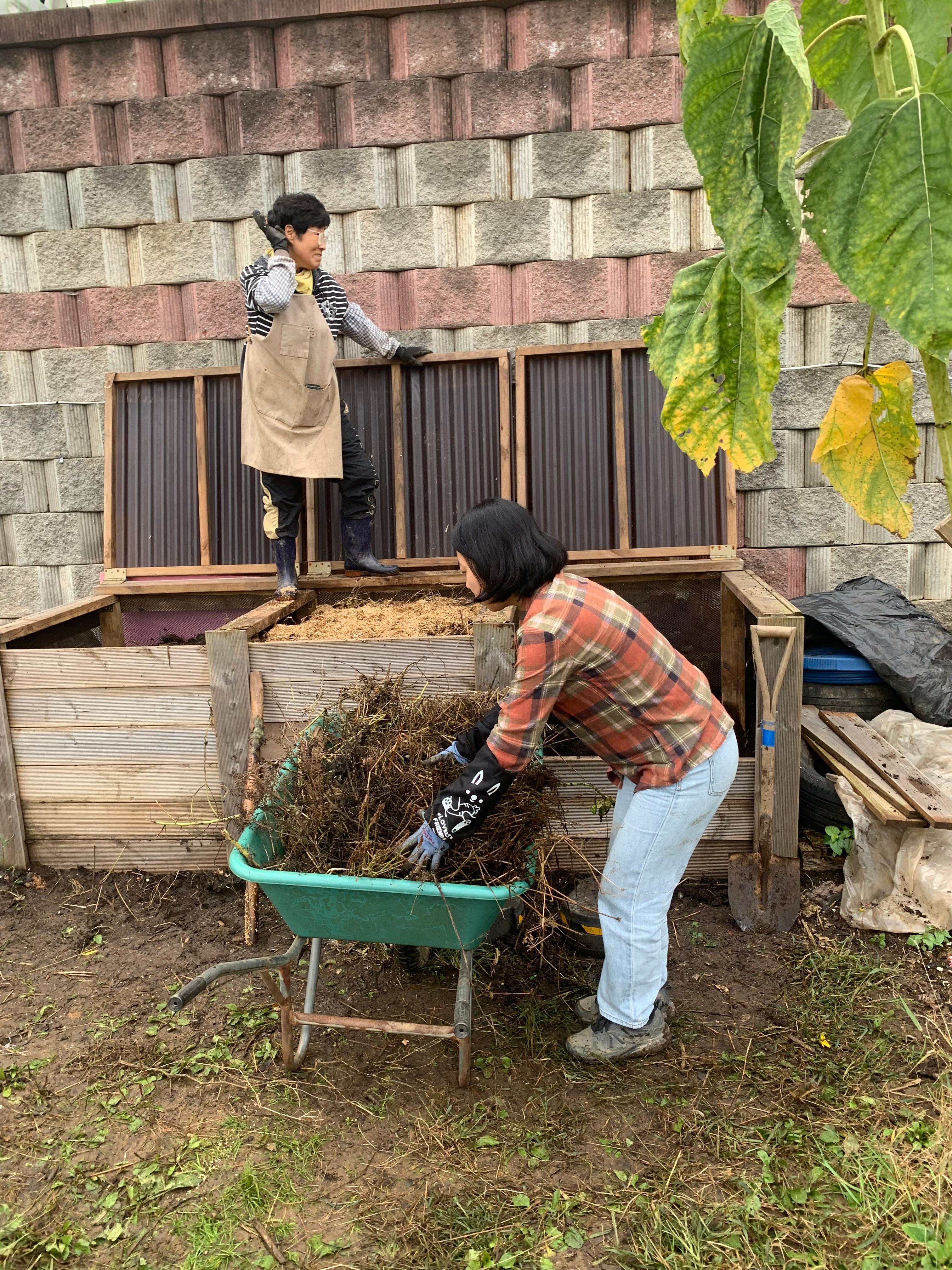 배불리 식사 후 퇴비 옮기고 화장실것도 다 퇴비간에 넣었습니다.