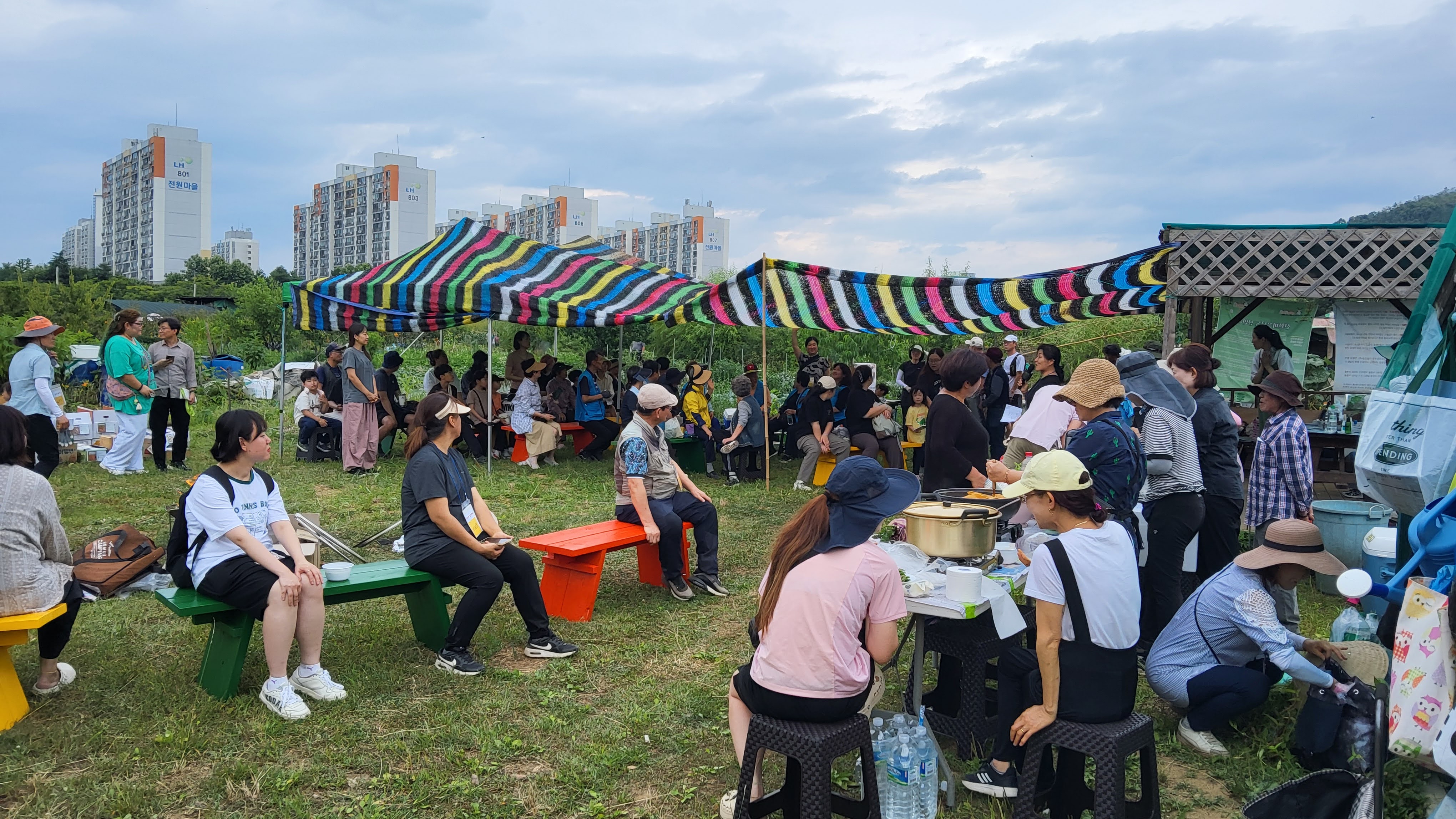 어르신분들과 어린 아이들, 가족단위로 참여하신 분들도 많으셨는데요. 저 멀리 세종에서 오신 분까지 어느새 100여명이 넘는 사람들이 만수마을이음텃밭에 옹기종기 모였습니다.