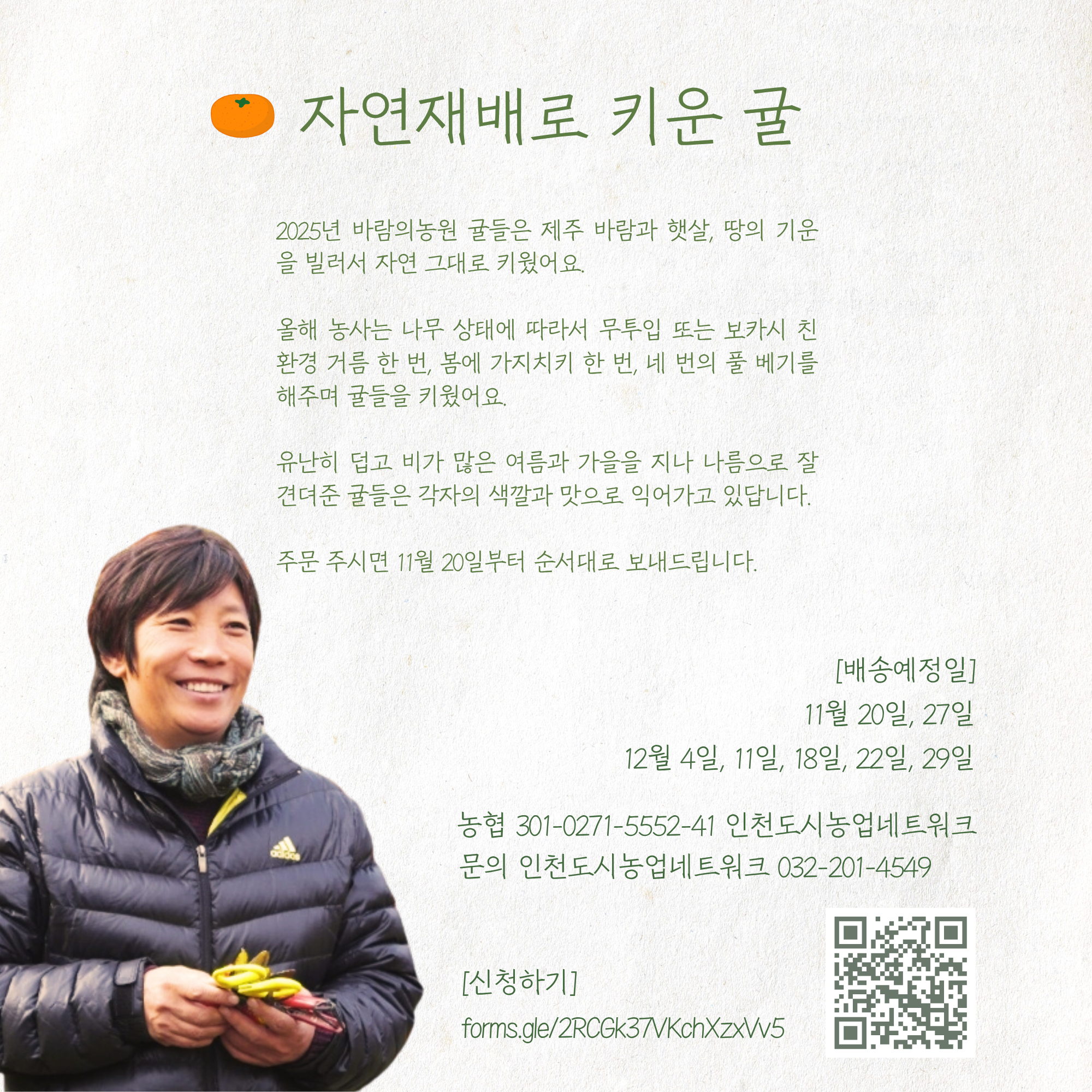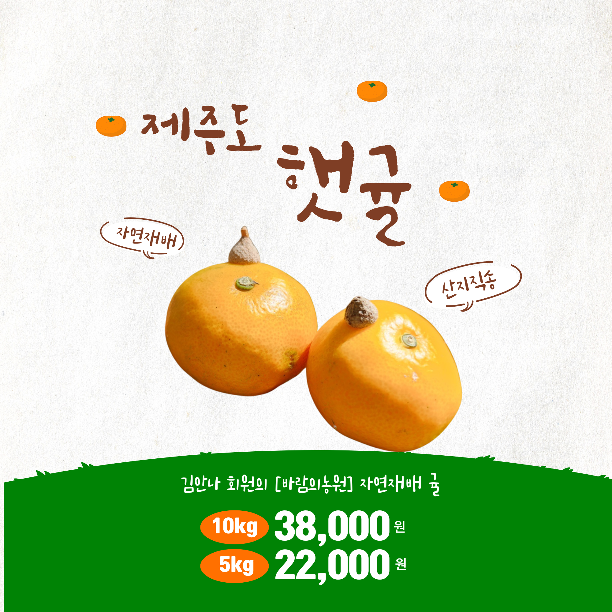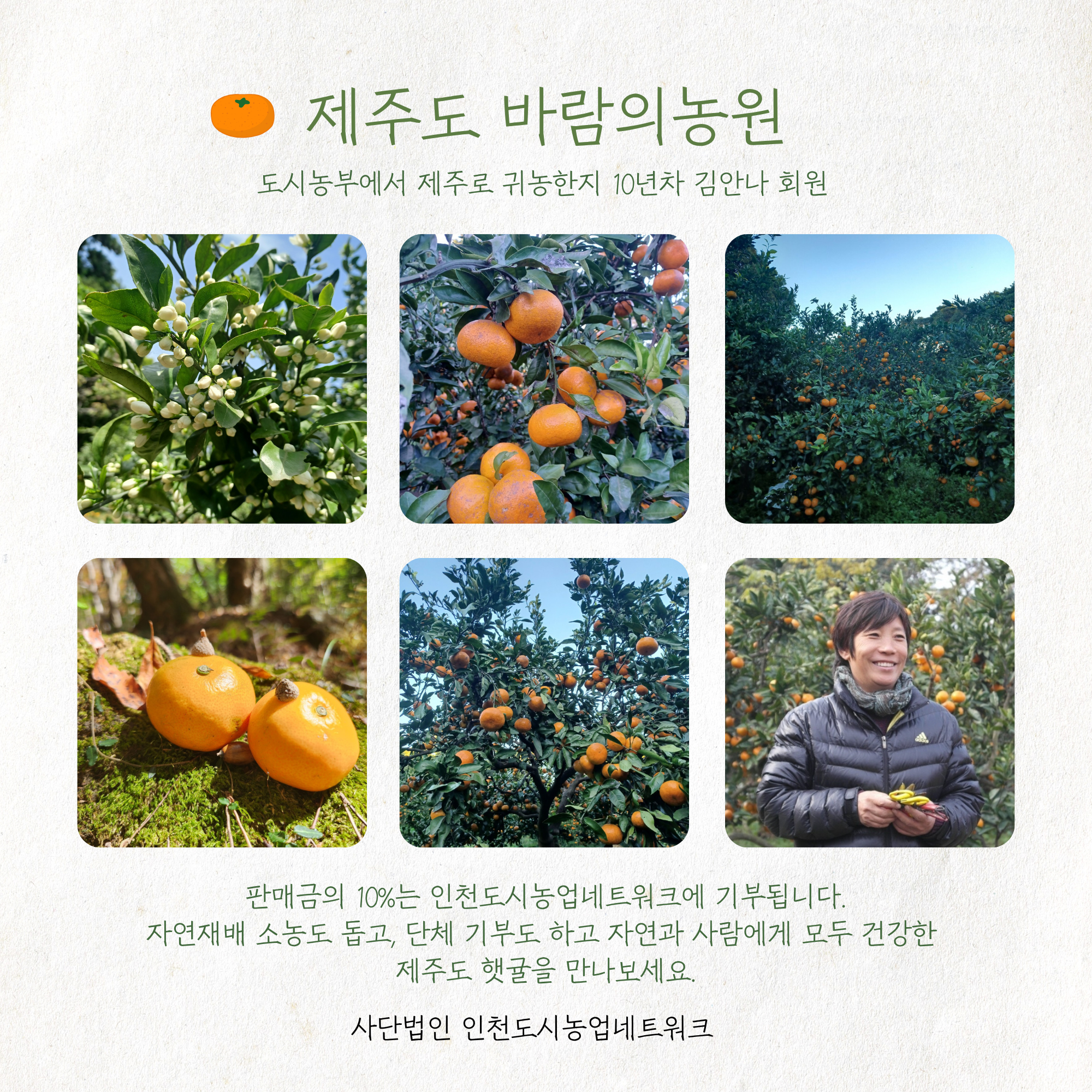 도시농부활동가에서 제주로 귀농한지 10년, 자립을 위해 귤농사를 자연재배하고 있는 바람의농원 김안나 회원의 햇귤을 판매합니다.