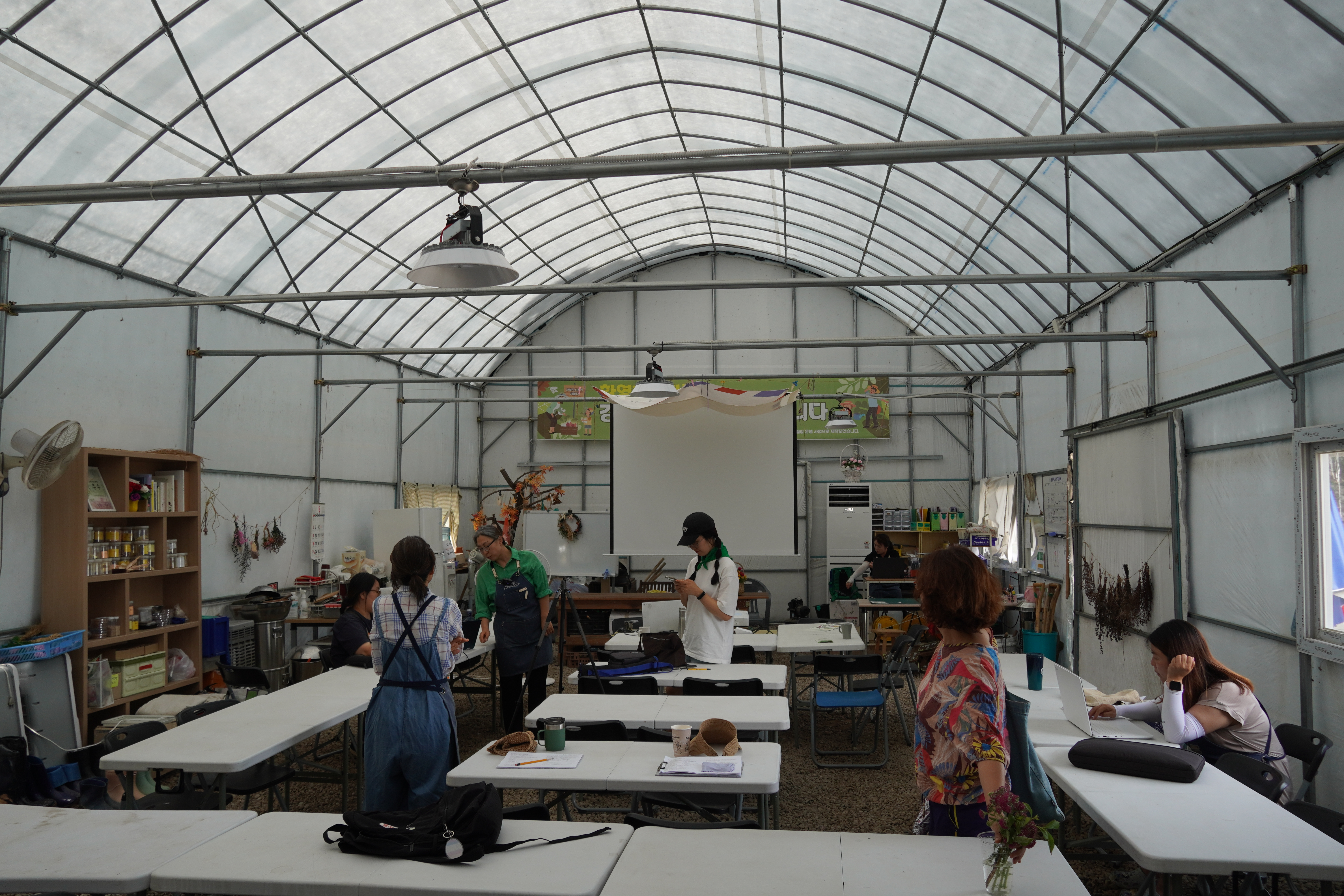 그렇게 공동체 방식으로 회원들과 텃밭을 운영하고 있었는데 LH가 민원을 받게 되면서 토지 임대를 하지 못하게 되었습니다. 이 텃밭을 지속하기 위해 또다시 방법을 찾아보니 서울시에서 도시농업을 위해 토지를 임대하는 것은 가능하다고 해서 시 예산으로 텃밭도 지속할 수 있었고, 교육장소로 쓰일 하우스도 짓고 텃밭도 확장하고 강북마을텃밭도 사단법인이 되었다고 합니다. 안타까운 지점은 서울시의 도시농업 정책이 힘을 잃어갔던(도시농업 담당 부서, 도시텃밭이 없어지는 등…) 때가 강북마을텃밭은 참여자도 늘고 규모가 커지는 시기였다는 것입니다. 그래서 장애인단체, 돌봄단체, 이주여성 등 더 다양한 주체들이 참여하고 열린 텃밭이 될 수 있도록 노력하고 있다는 이야기를 하셨습니다. 거기에 활동을 하다보니 기후위기, 먹거리, 퍼머컬쳐 등 다양한 주제에 대한 인식이 생기고 공부를 해나가고 있다고 합니다.