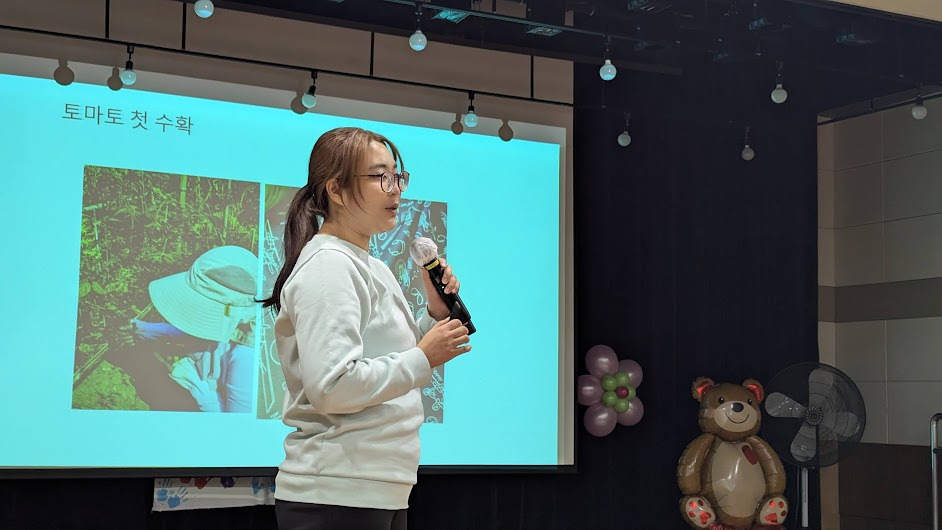 '모두가 초록의 진심'의 정지아 님은 텃밭 활동의 매력을 유쾌하게 풀어냈습니다. 첫날, 기계 대신 직접 밭을 갈며 "인간 로터리"가 되었던 경험부터, 비바람을 맞아 '꼬질꼬질한' 모습이었지만 최고의 풍미를 선사했던 토마토 이야기까지, 그의 발표는 좌중을 웃음 짓게 했습니다.