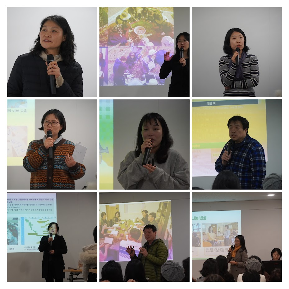 총회 전 회원들의 활동발표가 있었습니다. 김보혜 이사의 진행으로 먼저 영상시청 후 각 회원모임별 활동발표를 하였습니다. 도림텃밭, 스배자, 온새미로, 주경야독, 씨앗이음, 흙놀이, 논습지동아리, 전환위원회 순으로 발표가 있었습니다.