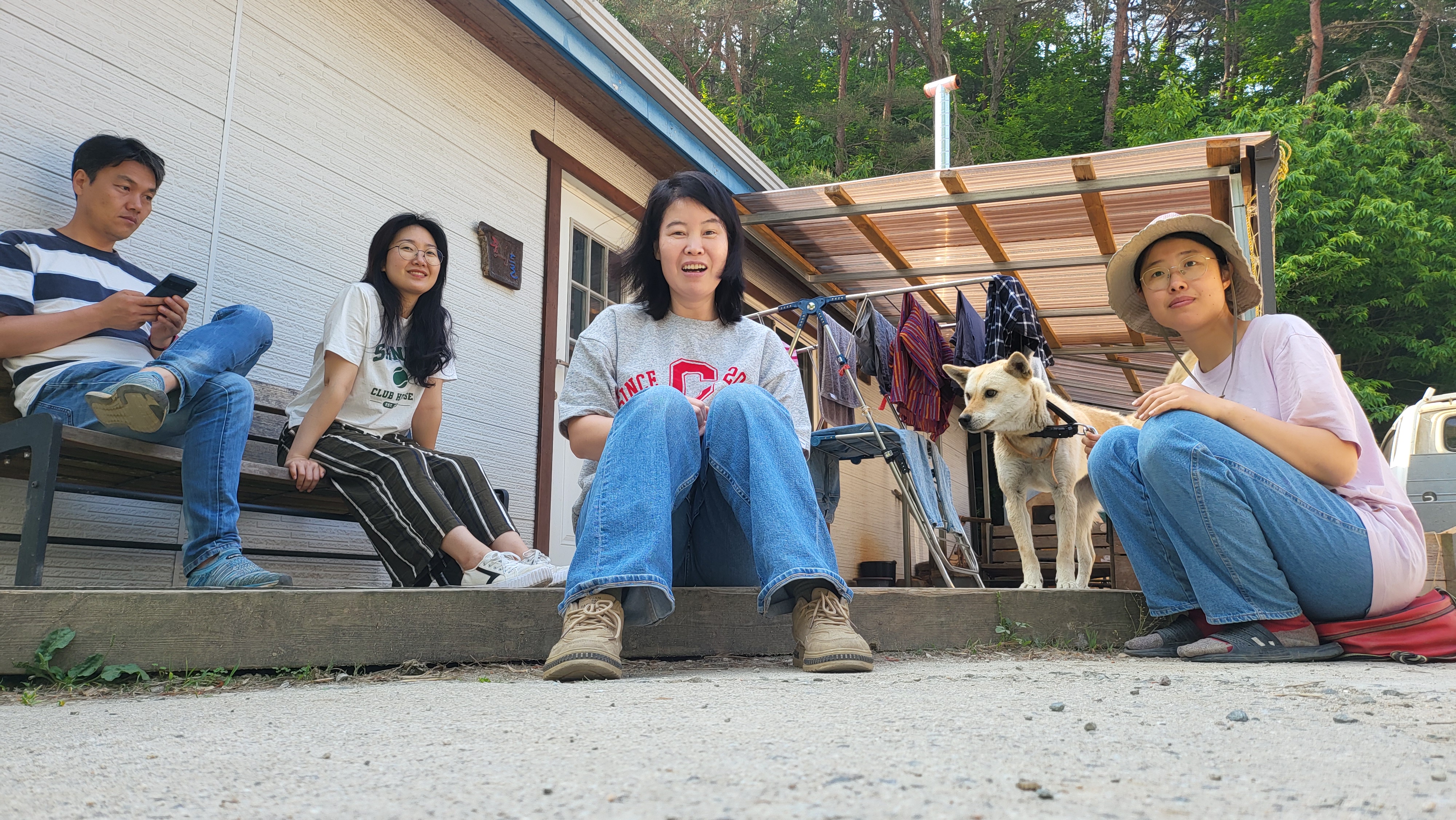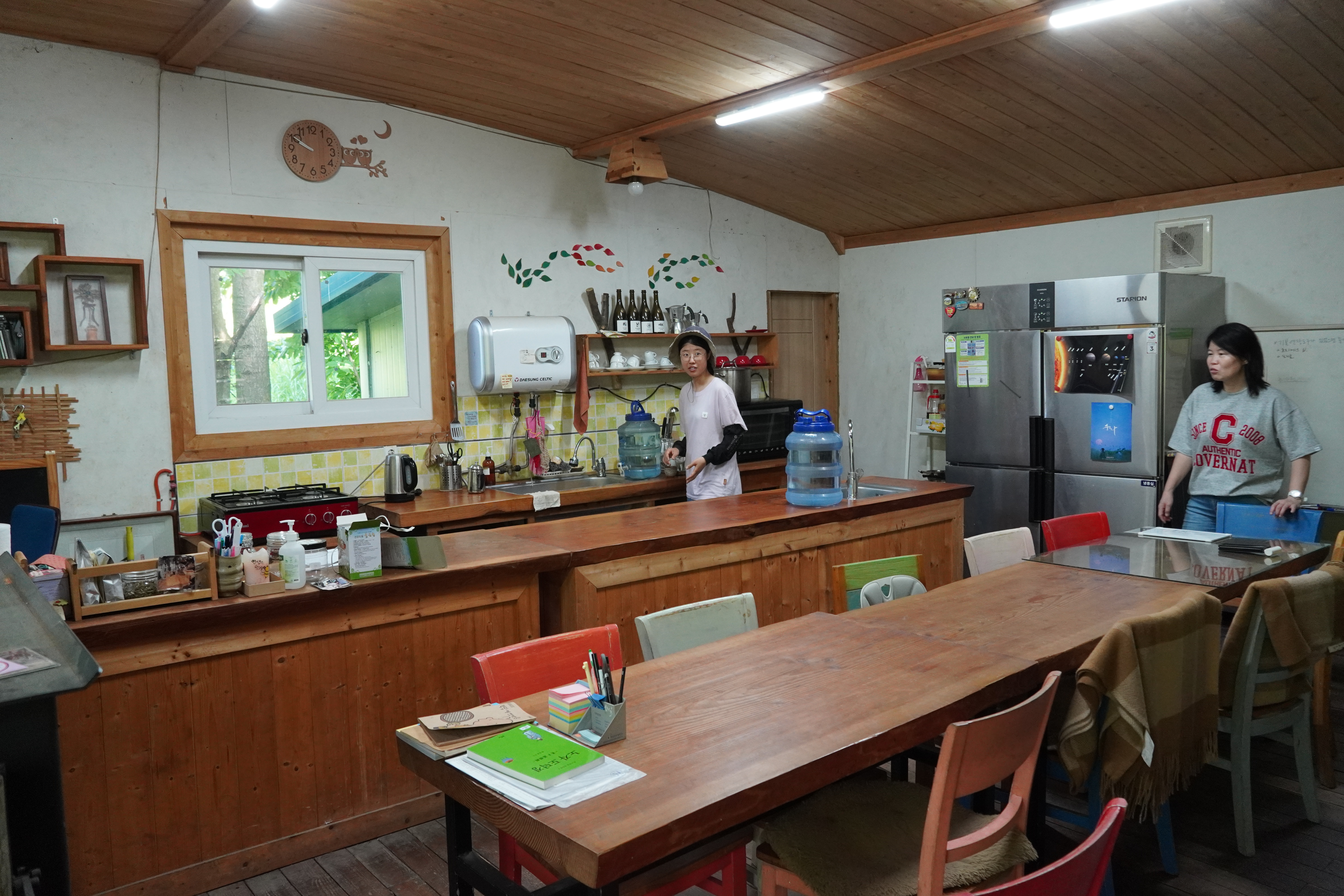 간담회가 끝나고 이튿날 마을 이곳저곳, 항꾸네협동조합의 공간들과 조합원들의 공간을 둘러보았다. 농부가 자기공간을 조금 얻어 농사를 시작하기도 했고, 다정의 집과 뜰을 보기도했고, 자급력이 강한 조합원의 밭을 둘러보기도 했다. 그리고 찾은 곳은 조금 떨어진 공간인데 항꾸네협동조합의 첫 공유공간인 '농담' 지금은 '겸면작은도서관 책담'이라는 간판이 달려있다. 조합원들의 모임공간, 공부공간, 공유주방 기능을 하면서 마을에서는 도서관의 기능을 하고 있다. 이 앞에 멋지게 만들어진 데크는 조합원들이 시간과 노력을 서로 내어 만들어진 공간으로 시농제도 하고 모임도하는 곳이다.