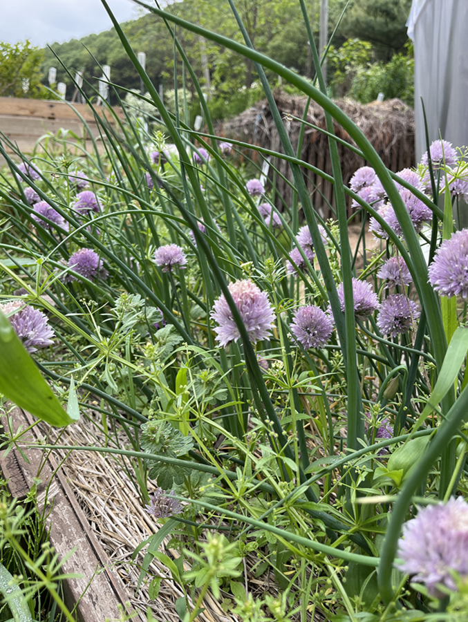 농장 가운데로 이어진 길을 따라 좌우로 풀과 꽃이 만발이다. 이건 구기자, 이건 차이브… 귀로는 안철환 선생님의 설명을 들으며 하나하나 눈에 담는다.