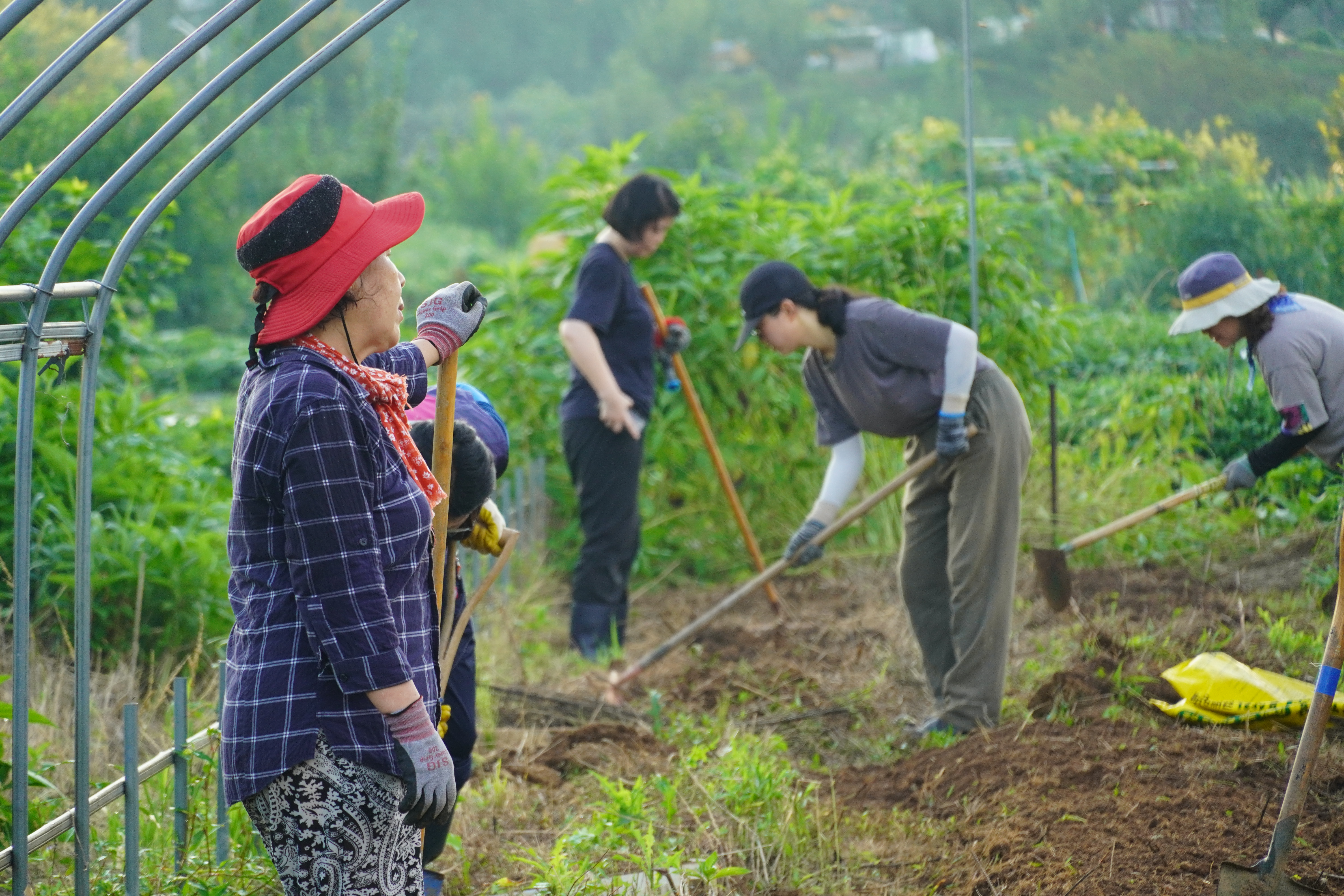 열심히 땀을 내고 있으니 서서히 햇빛이 뜨거워지기 시작했습니다. 그때! 토종농부단에 참여하진 않으시지만 도움의 손길을 나누기 위해 도시농부들이 슈퍼맨처럼 등장했습니다. 감사합니다!!