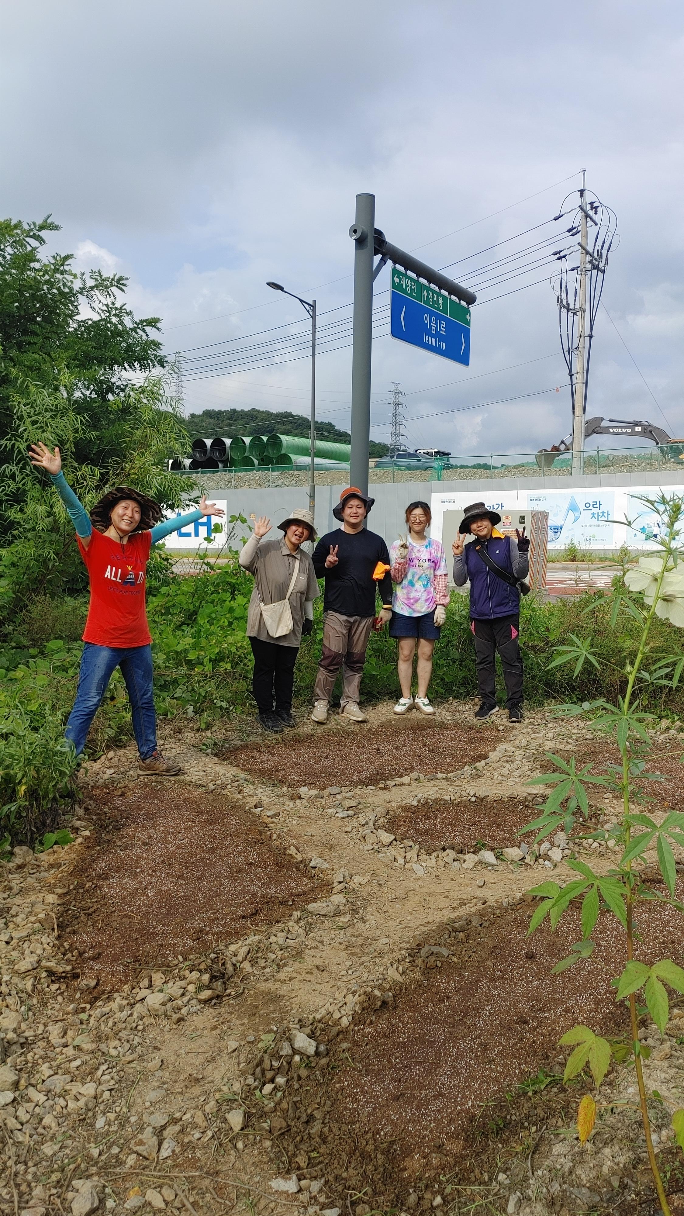 정원이 깔끔하게 완성된 모습을 보니 여러 종류의 풀들이 마구잡이로 엉켜 있던 이전과 확연하게 달라져서 뿌듯했다. 우리가 손으로 땅을 고르고 씨앗을 뿌리는 동안 길 건너편 공사장에서 포클레인이 아파트가 세워질 땅을 파고 있었다. 아파트에서 내려다볼 땅에 쓰레기와 잡초만 가득하다면 슬플 지도 모른다. 내가 일손을 보탠 작은 정원이 이 동네에 사는 누군가에게 작은 기쁨이 되었으면 좋겠다.