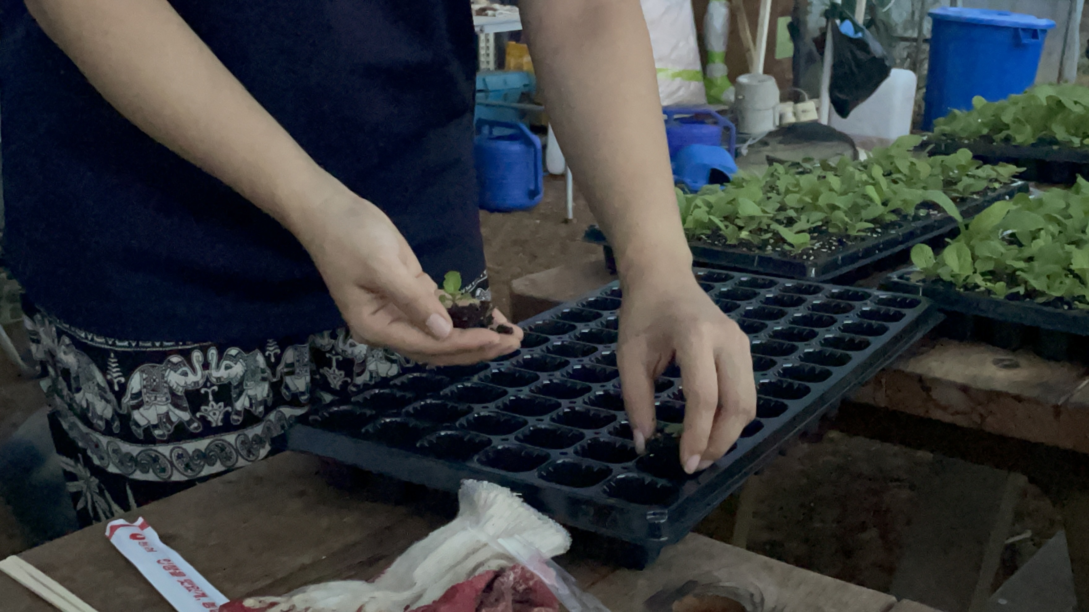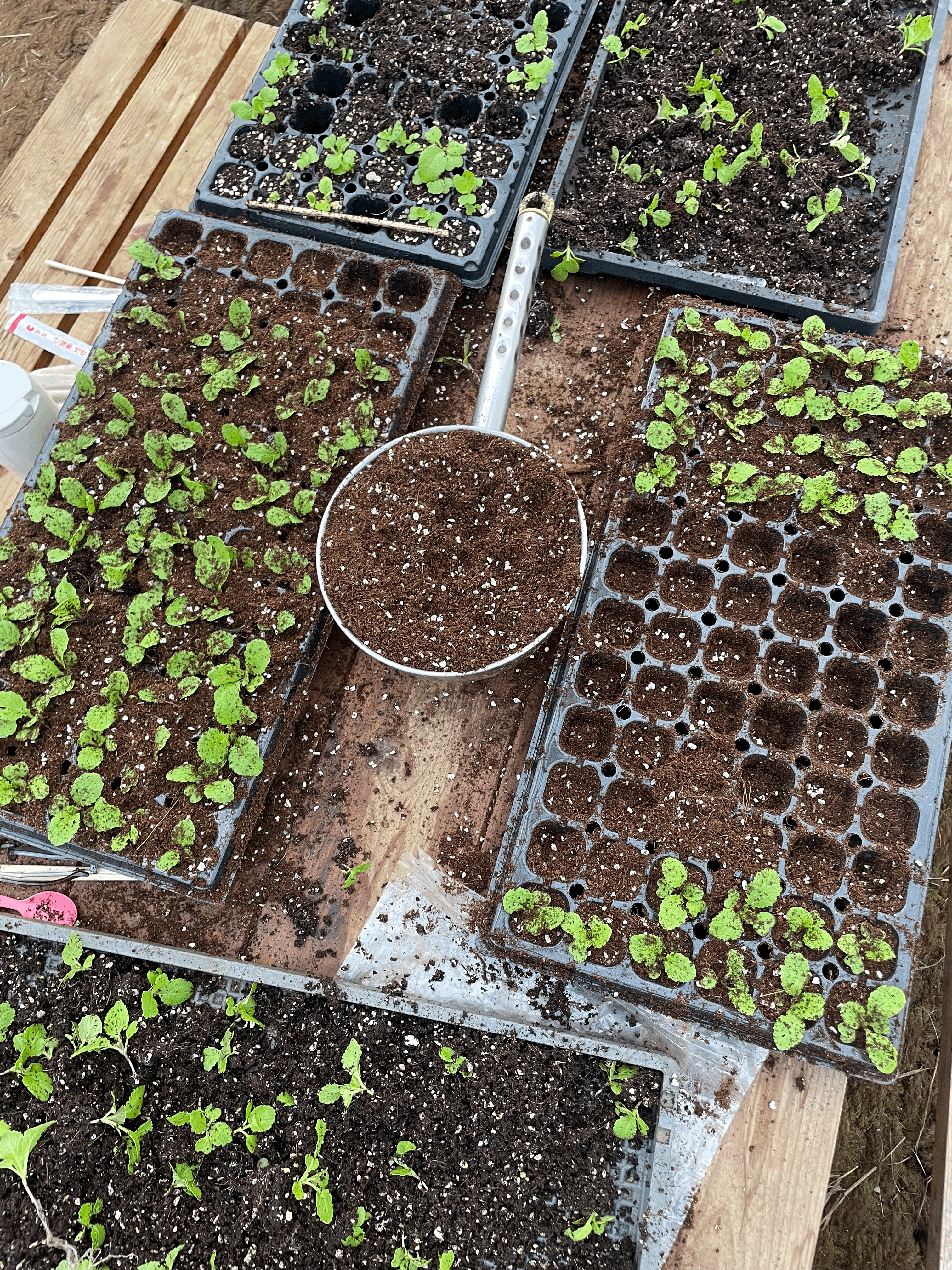 분리된 새싹들은 영양분이 있는 새로운 상토와 함께 모판에 새롭게 심겨졌습니다.