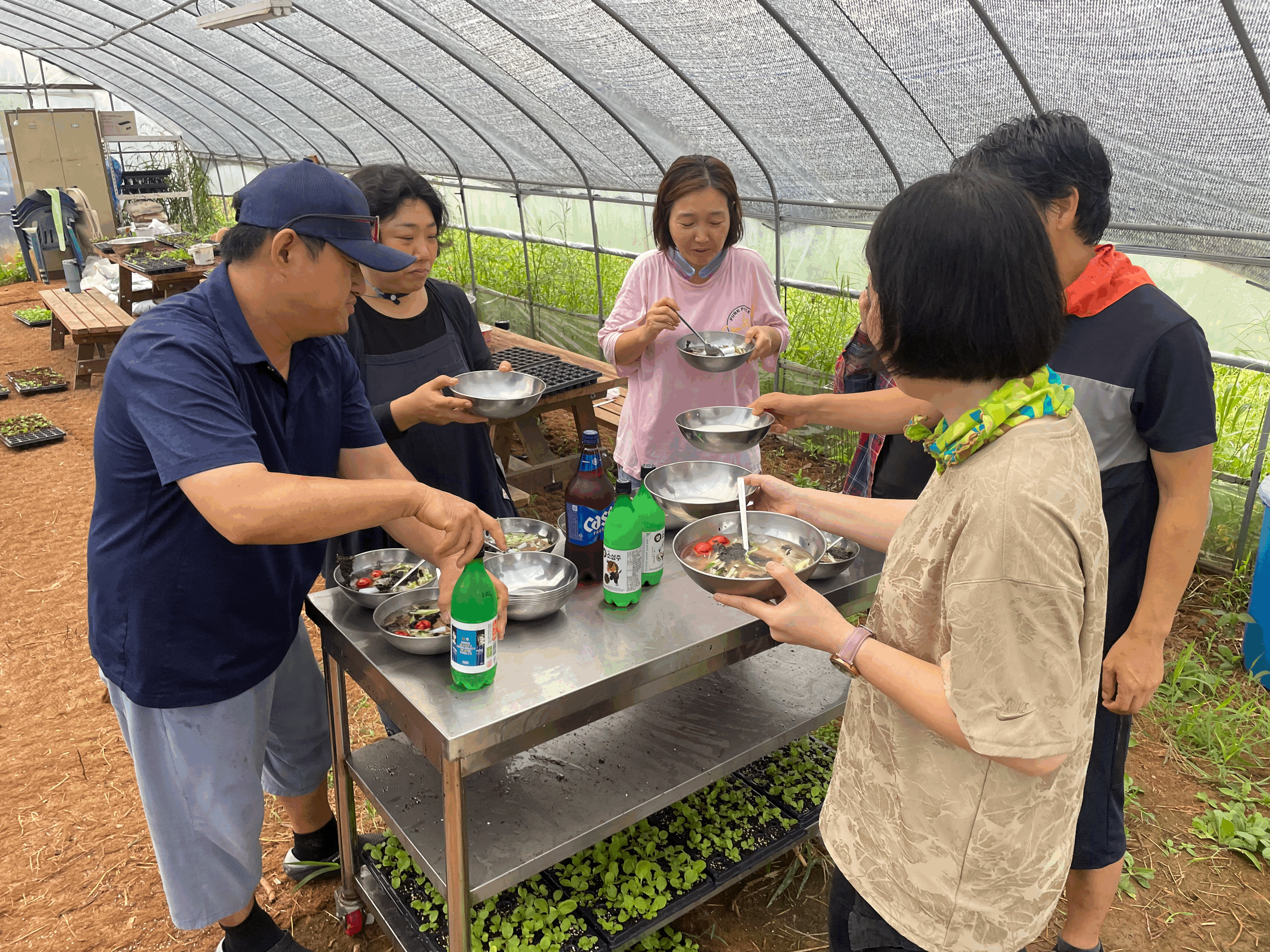 중간에 새참 타임도 가졌는데요! 방울토마토를 가져와주신 선생님이 구성원들의 사발에 한두알씩 넣어주셨습니다.
